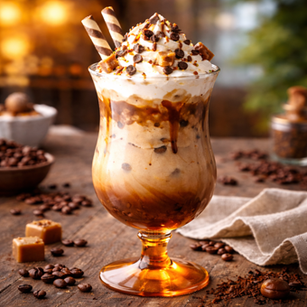 | Der Klassiker aus einer Kugel Vanille-Eis mit Kaffee und Sahne |